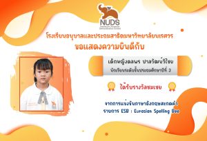 พ.ย. 26 🎉 ขอแสดงความยินดีกับ เด็กหญิงดลพร ปาลวัฒน์วิไชย นักเรียนระดับชั้น ป.3 ได้รับรางวัลชมเชยจากการแข่งขันภาษาอังกฤษสะกดคำ