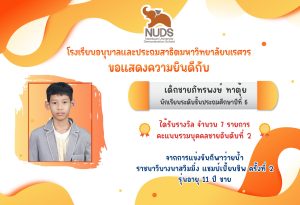 พ.ย. 26 🎉 ขอแสดงความยินดีกับเด็กชายภัทรพงษ์ ทาตุ้ย นักเรียนระดับชั้น ป.6 ได้รางวัล จำนวน 7 รายการ จากการแข่งขันกีฬาว่ายน้ำ