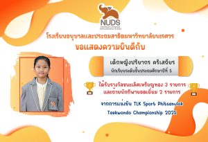 พ.ย. 26 🎉 ขอแสดงความยินดีกับ เด็กหญิงปริยากร คริเสถียร นักเรียนชั้น ป.5 ได้รับรางวัลจากการแข่งขัน TLK Sport Phitsanulok Taekwondo Championship 2025