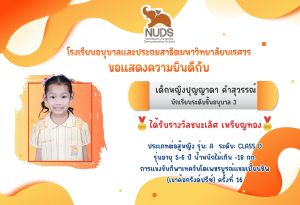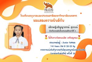 ม.ค. 22 🎉 ขอแสดงความยินดีกับเด็กหญิงปุญญาดา คำสุวรรณ์ นักเรียนชั้น อ.3 ได้รับรางวัลชนะเลิศเหรียญทองจากการแข่งขันกีฬาเทควันโด