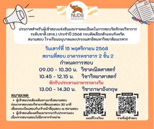 ต.ค. 14 📢 ประกาศรายชื่อผู้มีสิทธิ์เข้ารับการสอบภาคความเหมาะสมกับตำแหน่ง (สอบสัมภาษณ์) ตำแหน่งนักวิชาการศึกษา
