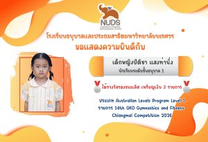 ม.ค. 26 🎉 ขอแสดงความยินดีกับเด็กชายติณณสีห์ บุรกิจภาชัย นักเรียนระดับชั้น ป.3 ได้รับรางวัลชนะเลิศอันดับที่ 1 เหรียญทองจากการแข่งขันเทควันโด