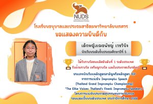ม.ค. 29 🎉 ขอแสดงความยินดีกับ เด็กหญิงเฌอพัชญ์ เวชวินิจ นักเรียนระดับชั้น ป.5 ได้คะแนนสูงสุดชนะเลิศอันดับที่ 2 ระดับประเทศ โครงการแข่งขันการพูดสุนทรพจน์ภาษาอังกฤษ