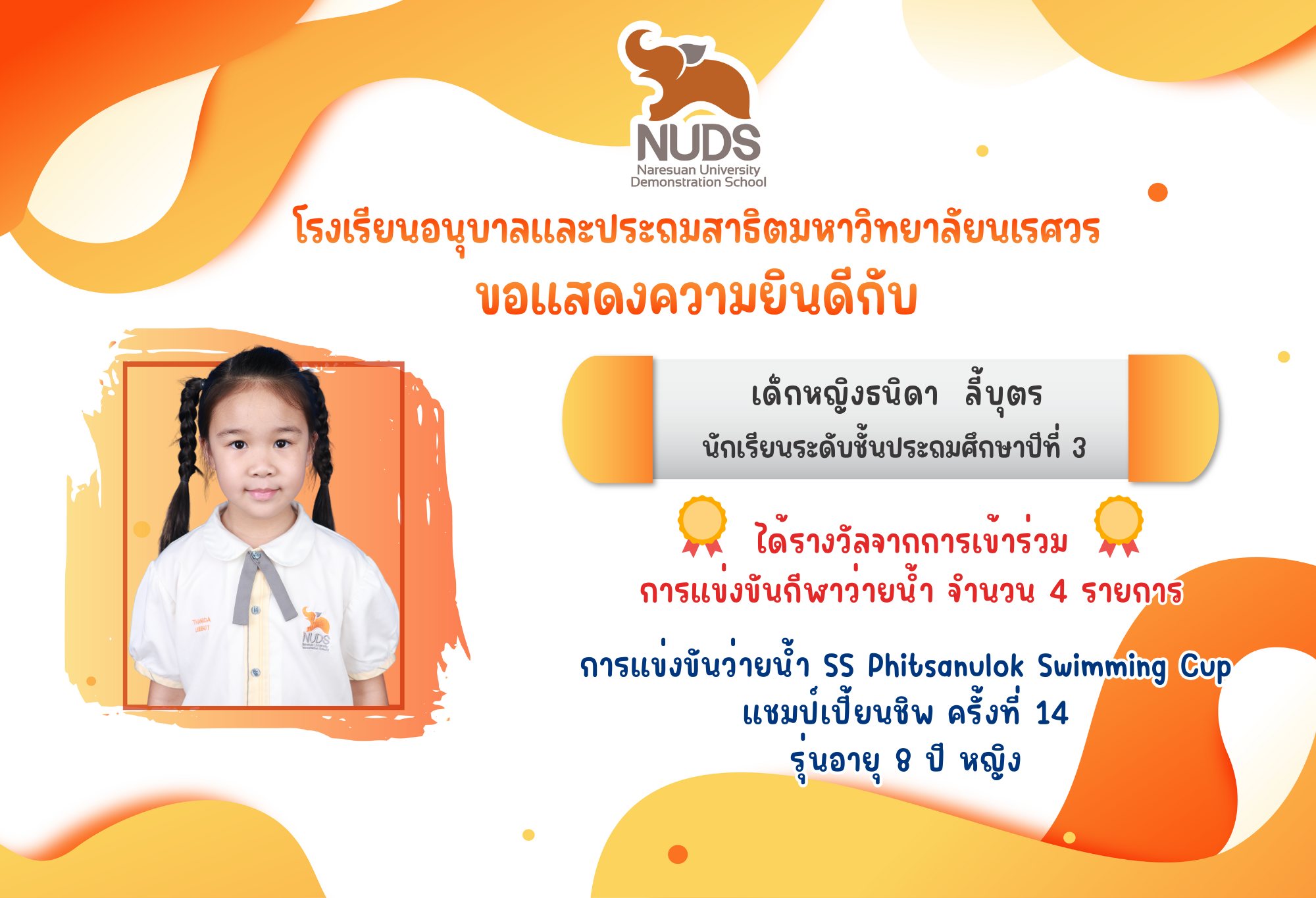 āļāļēāļĢāđāļāđāļāļāļąāļāļ§āđāļēāļĒāļāđāļģ SS Phitsanulok Swimming Cup āđāļāļĄāļāđāđāļāļĩāđāļĒāļāļāļīāļ āļāļĢāļąāđāļāļāļĩāđ 14 āļĢāļļāđāļāļāļēāļĒāļļ 8 āļāļĩ āļŦāļāļīāļ