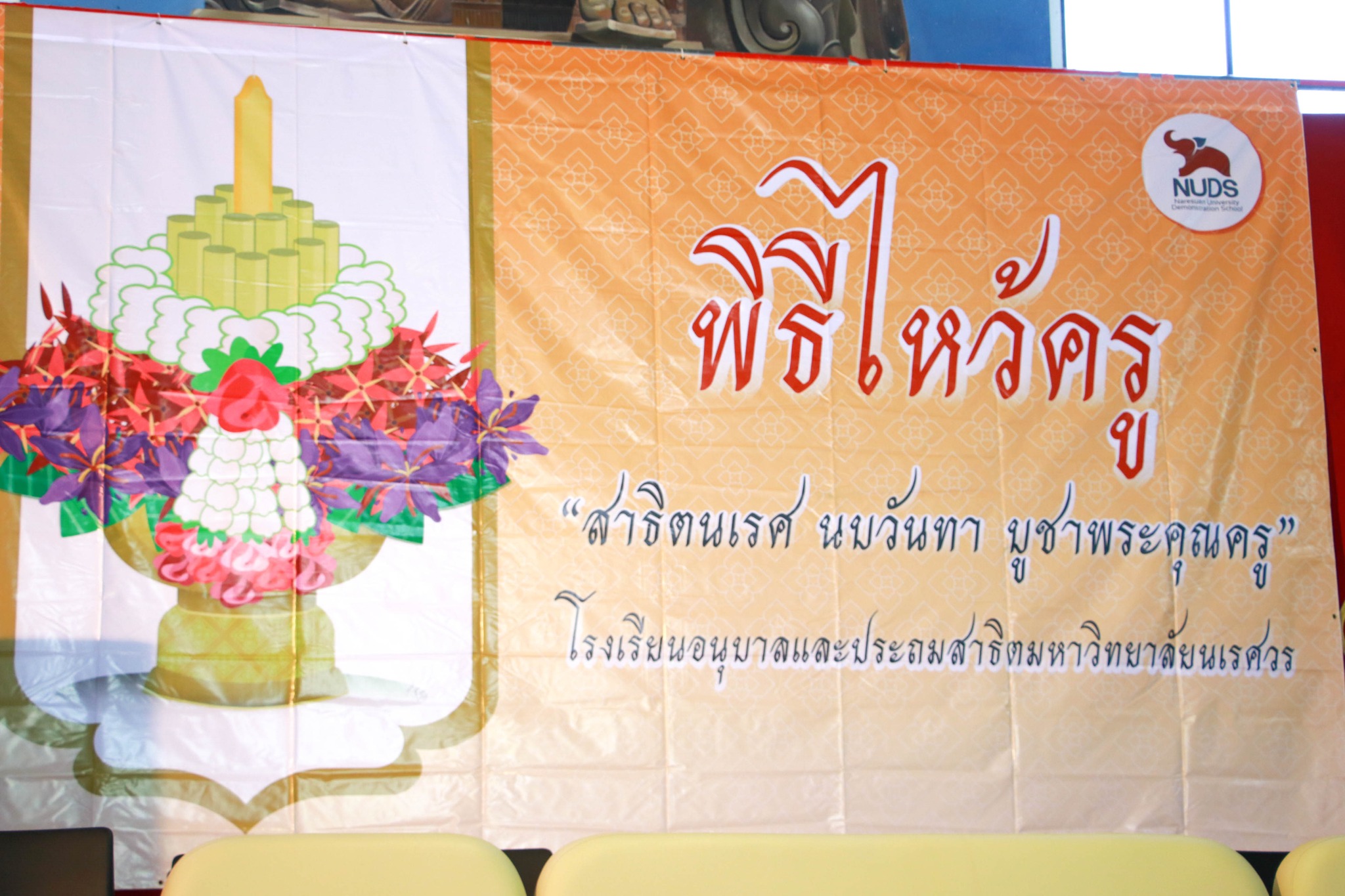 วันที่ 19 มิถุนายน 2568 โรงเรียนอนุบาลและประถมสาธิตมหาวิทยาลัยนเรศวร จัดกิจกรรมวันไหว้ครู “สาธิตนเรศ นบวันทา บูชาพระคุณครู” ประจำปีการศึกษา 2568 ณ อาคารกิจกรรมด้านศิลปวัฒนธรรม มหาวิทยาลัยนเรศวร โดยได้รับเกียรติจาก ผู้ช่วยศาสตราจารย์ ดร.เอื้อมพร หลินเจริญ ผู้อำนวยการโรงเรียน เป็นประธานในพิธี พร้อมด้วยผู้ช่วยศาสตราจารย์ ดร.สถิรพร เชาวน์ชัย รองผู้อำนวยการโรงเรียน กล่าวให้โอวาทแก่นักเรียนในพิธีไหว้ครูครั้งนี้ โดยตัวแทนนักเรียนแต่ละชั้นได้นำพานดอกไม้ซึ่งเป็นเสมือนตัวแทนความรัก ความเคารพ กตัญญูกตเวที นำมากราบไหว้ผู้บริหารและคณะครู เพื่อระลึกถึงพระคุณครูที่ได้อบรมสั่งสอนและดูแลให้นักเรียนเป็นคนดี ทั้งนี้ มีการแสดงฟ้อนรำชุด “รำลึกหาบูชาครู” ของตัวแทนนักเรียนชั้นประถมศึกษา และการมอบเกียรติบัตรให้แก่นักเรียนในการประกวดวาดภาพระบายสีภาพ ของนักเรียนระดับชั้นอนุบาล