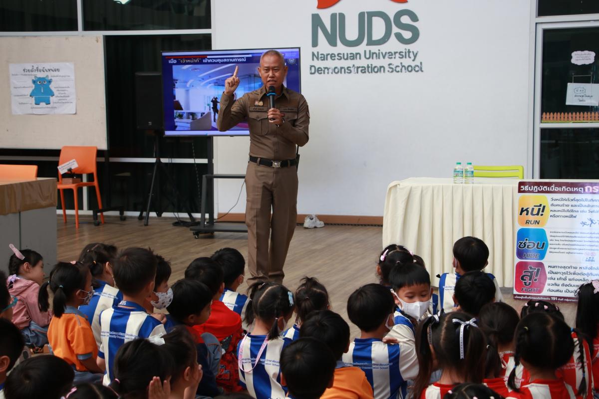 วันที่ 4 กุมภาพันธ์ 2569 โรงเรียนอนุบาลและประถมสาธิตมหาวิทยาลัยนเรศวร จัดโครงการอบรมเชิงปฏิบัติการ “ซ้อมเหตุอัคคีภัยและแผนเผชิญเหตุ” ประจำปีการศึกษา 2568 โดยได้รับเกียรติจาก พ.ต.ท.หญิง อิศริยา ต๊กควรเฮง สวป(ชส.) สถานีตำรวจภูธรเมืองพิษณุโลก และร.ต.ท.อนันต์ ลอยเวหา สว.(ป.) สถานีตำรวจภูธรเมืองพิษณุโลก พร้อมด้วยทีมตำรวจจากสถานีตำรวจภูธรเมืองพิษณุโลก เป็นวิทยากรในการให้ความรู้กับบุคลากรและนักเรียน ในโครงการอบรมเชิงปฏิบัติการ ในหัวข้อ “หนี ซ่อน สู้” ประจำปี 2568 เพื่อให้ครู บุคลากร และนักเรียนของโรงเรียน ได้เตรียมความพร้อมในการรับมือเมื่อเกิดเหตุฉุกเฉินและลดการสูญเสียต่อชีวิตและทรัพย์สิน จากการจำลองเหตุการณ์เสมือนจริง กรณีเกิดเหตุอาชญากรรมในสถานศึกษา การเรียนรู้ทักษะการเอาตัวรอดเมื่อเผชิญเหตุฉุกเฉิน โรงเรียนอนุบาลและประถมสาธิตมหาวิทยาลัยนเรศวรขอขอบคุณวิทยากรและทีมตำรวจจากสถานีตำรวจภูธรเมืองพิษณุโลกเป็นอย่างสูงที่เข้ามาให้ความรู้และฝึกซ้อมสถานการณ์เมื่อเกิดเหตุฉุกเฉินให้กับบุคลากรและนักเรียนในครั้งนี้
