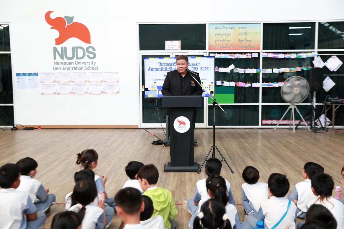 วันที่ 4 มีนาคม 2569 โรงเรียนอนุบาลและประถมสาธิตมหาวิทยาลัยนเรศวร จัดโครงการพัฒนาศักยภาพด้านเทคโนโลยีสารสนเทศ ประจำปีการศึกษา 2568 ของนักเรียนระดับชั้นประถมศึกษาปีที่ 1-6 ณ โรงเรียนอนุบาลและประถมสาธิตมหาวิทยาลัยนเรศวร โดยได้รับเกียรติจาก รองศาสตราจารย์ ดร.สถิรพร เชาวน์ชัย รองผู้อำนวยการโรงเรียน เป็นประธานในพิธีเปิดโครงการ ซึ่งโครงการนี้จัดขึ้นเพื่อพัฒนานักเรียนให้มีทักษะความสามารถใช้เทคโนโลยีสารสนเทศในการแสวงหาความรู้ มีทักษะการใช้เทคโนโลยีและการสื่อสารในชีวิตประจำวัน โดยได้รับความอนุเคราะห์วิทยากรจากคณะศึกษาศาสตร์ มหาวิทยาลัยนเรศวร ดร.ภัทร์พงศ์ พงศ์ภัทรกานต์ อาจารย์ประจำภาควิชาเทคโนโลยีและสื่อสารการศึกษา มาร่วมจัดกิจกรรมการบรรยายพร้อมฝึกปฏิบัติการ เรื่อง รู้เท่าทัน AI : โอกาส ความเสี่ยง การใช้อย่างสร้างสรรค์ และหัวข้อการส่งเสริมการใช้เทคโนโลยีดิจิทัลอย่างสร้างสรรค์และปลอดภัย ให้กับนักเรียนในระดับชั้นประถมศึกษาปีที่ 1-6 อีกทั้งนักเรียนได้เข้าร่วมกิจกรรมเสริมทักษะการเรียนรู้เทคโนโลยีจากฐานกิจกรรมต่าง ๆ ทำให้นักเรียนได้พัฒนาความรู้ ฝึกทักษะด้านการใช้เทคโนโลยีสารสนเทศในการคิดสร้างสรรค์ผลงานนวัตกรรม นำไปปรับใช้ในชีวิตประจำวัน