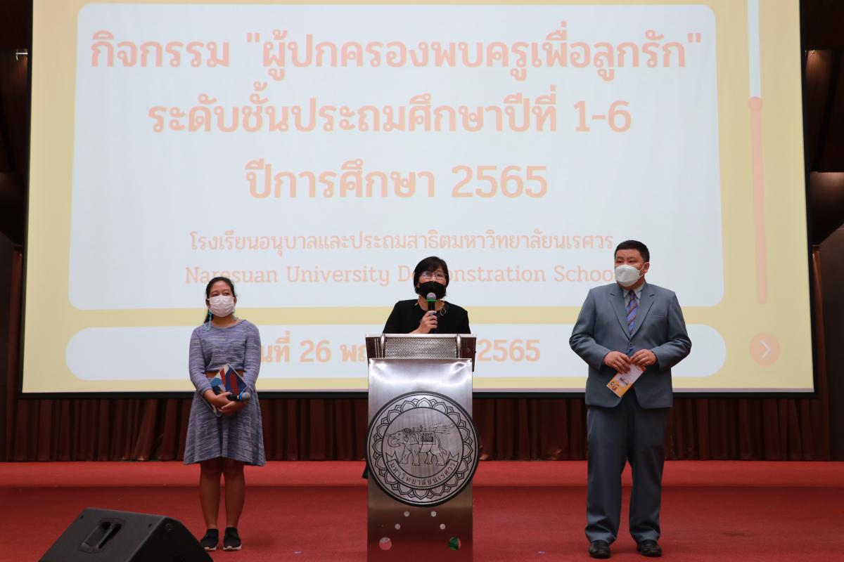 วันที่ 26 พฤศจิกายน 2565 โรงเรียนอนุบาลและประถมสาธิตมหาวทิยาลัยนเรศวร จัดโครงการผู้ปกครองพบครูเพื่อลูกรัก ระดับประถมศึกษาปีที่ 1-6 ปีการศึกษา 2565 ณ ห้องประชุมมหาราช 1 ชั้น 2 อาคารอุทยานองค์สมเด็จพระนเรศวรมหาราช มหาวิทยาลัยนเรศวร เพื่อสร้างสัมพันธภาพที่ดีระหว่างโรงเรียนและผู้ปกครองพร้อมแลกเปลี่ยนแนวทางในการจัดกิจกรรมการเรียนรู้และการพัฒนานักเรียน ได้รับเกียรติจากรศ.ดร.ศรินทร์ทิพย์ แทนธานี รักษาราชการแทนอธิการบดีมหาวิทยาลัยนเรศวร พร้อมด้วยรองศาสตราจารย์ ดร.ปกรณ์ ประจันบาน คณบดีคณะศึกษาศาสตร์ กล่าวเปิดงานและกล่าวต้อนรับผู้ปกครองที่มาร่วมงาน ทั้งนี้ ถือเป็นการพบปะและแลกเปลี่ยนความคิดเห็นในการพัฒนาแนวทางการเรียนการสอนและการพัฒนานักเรียน ระหว่างผู้ปกครองและคณะผู้บริหารโรงเรียน นำโดย ผศ.ดร.เอื้อมพร หลินเจริญ รักษาการในตำแหน่งผู้อำนวยการโรงเรียน, ผศ.ดร.สถิรพร เชาวน์ชัย รักษาการในตำแหน่งรองผู้อำนวยการโรงเรียน และอาจารย์สุภารัตน์ เชื้อโชติ รักษาการในตำแหน่งรองผู้อำนวยการโรงเรียน อีกทั้ง ผู้ปกครองได้พบปะและพูดคุยร่วมกับครูประจำชั้น เพื่อคัดเลือกผู้ปกครองระดับชั้นเรียนเข้าร่วมชมรมผู้ปกครองของโรงเรียน และร่วมแลกเปลี่ยนแนวทางในการดูแลนักเรียน การจัดการเรียนการสอนตลอดภาคการศึกษานี้